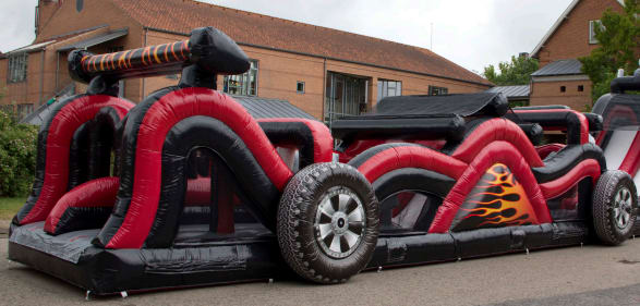 High Way Track er navnet på vores længste forhindringsbane. Den består af 3 dele og tilsammen bliver længden over 32 meter fra indgang til udgang. Det er Danmarks længste oppustelige forhindringsbane.