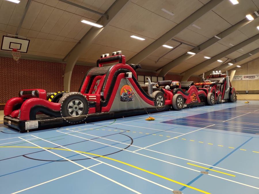 High Way Track er navnet på vores længste forhindringsbane. Den består af 3 dele og tilsammen bliver længden over 32 meter fra indgang til udgang. Det er Danmarks længste oppustelige forhindringsbane.